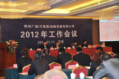 2012年1月11日,陜西廣通運(yùn)輸發(fā)展有限公司、陜西萬(wàn)晟通實(shí)業(yè)有限公司2012年工作會(huì)議在西安悅豪酒店隆重召開(kāi)。陜煤運(yùn)銷集團(tuán)公司總經(jīng)理助理、運(yùn)輸中心主任譚志軍,陜煤炭運(yùn)銷集團(tuán)公司財(cái)務(wù)部經(jīng)理、廣通公司財(cái)務(wù)總監(jiān)和學(xué)謙,廣通公司董事長(zhǎng)、萬(wàn)晟通公司董事長(zhǎng)任曉鵬,廣通公司總經(jīng)理、萬(wàn)晟通公司董事長(zhǎng)助理沈來(lái)萬(wàn),萬(wàn)晟通公司總經(jīng)理孟立新,陜煤炭運(yùn)銷集團(tuán)公司運(yùn)輸中心王江,以及廣通和萬(wàn)晟通公司的員工代表共九十多人參加了此次會(huì)議。會(huì)議由廣通公司常務(wù)副總經(jīng)理張益銘主持。